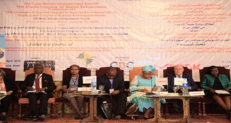 Participating in the dialogue are from left to right: Dr. Yasmin Darwich, President International Federation for Business and Professional Women; Prof. Santos Nicolau, Dean of Augustine University, Angola; Dr. James Olobo-Lalobo, Vice-President of Africa Fertility Society; Dr. Amany Asfour, First Vice President International Federation for Business and Professional Women, Chair of the Board of African Alliance for Women Empowerment (as Founder of BPW Egypt); H.E. Amb. Mona Omar Chair of International Relations Committee National Council of Women – Egypt.