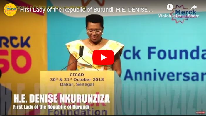 First Lady of the Republic of Burundi, H.E. DENISE NKURUNZIZA Speech at Merck Africa Asia LuminaryS.E. BRIGITTE TOUADERA, La Première Dame de la République Centrafricaine, a déclaré : « J'ai accepté avec joie d'être l'ambassadrice de « Merck more than a Mother » en 2016. Il s'agit d'une campagne historique que j'ai lancée avec eux dans mon pays ».